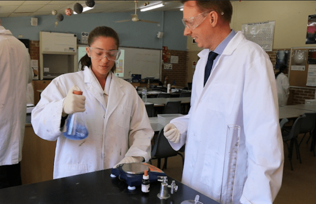 As our Year 11 students transition into Year 12 this term, we took the opportunity to visit Mr Jamieson’s Chemistry class to see some extraordinary learning in action. Mr Jamieson and Camila were performing the ‘reversible blue bottle reaction’ to investigate what factors drive reactions. We look forward to working in partnership with our Class of 2020 and continuing to develop extraordinary learners with a passion to serve.